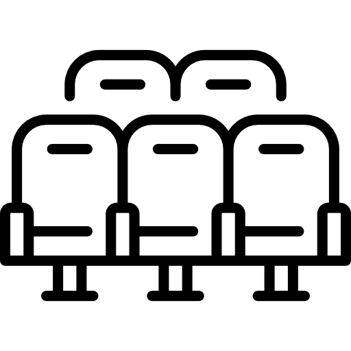 Amphithéâtre avec chaises capitonnées ou chaises avec pupitre destinés aux salles de cours d’université ou de salle de conférence.